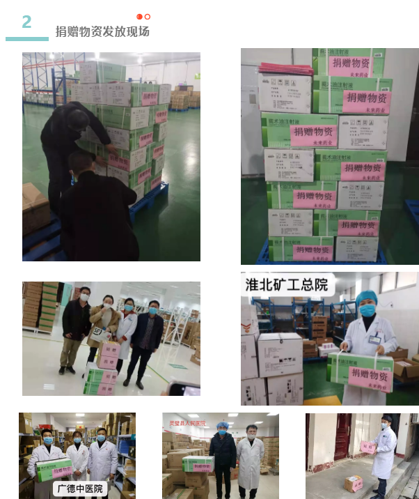 “新冠肺炎”疫情发生以来,合肥乐竞首页有限公司先后多次向安徽省红十字基金会捐赠药品莪术油注射液、注射用盐酸多巴胺、多种微量元素注射液,总价值1186224Ԫ,定向用于安徽省内一线医护人员医疗救助工作。与此同时,合肥未来药业有限公司也向湖北省疫区医院捐赠了相关药品,支援湖北疫区医疗一线。